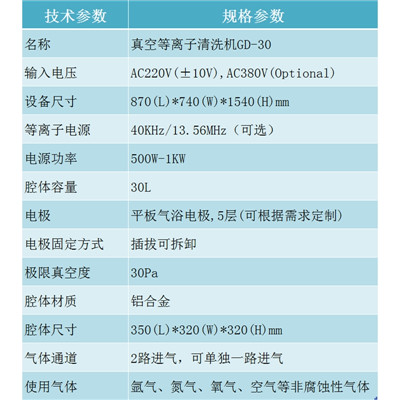 30L真空等離子清洗機-等離子設備-等離子處理機-等離子處理系統GD-30 技術參數